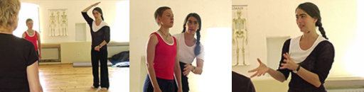 Selbständig plus Supervision das Material probieren, in Begleitung, mit Fangnetz und feedback von mir.